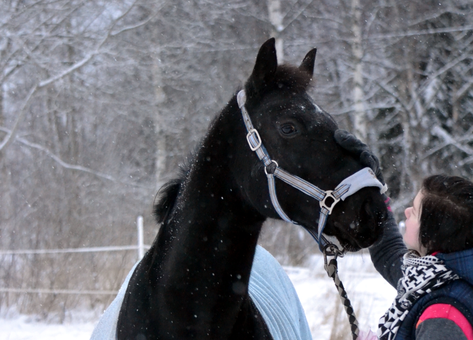 Matti sai uuden riimun+riimunnarun. Matilla on tosiaan ainoastaan 2 samanlaista riimunnarua. Mustaharmaita. Nyt se sitten sai sinisen pehmustetun riimun ja riimunnarun. Hintaa tuli yhteensä 11,20€.