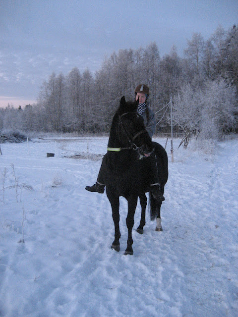 Nyt on ilmottauduttu koulukisoihin ja voin myöntää, että herranjumala ku jännittää! Oon ennenki kisannu, mut jotenki sillon oli rauhallisia tapauksia alla. Nyt pitäis kuumuvalla hevosella mennä täysin vieraaseen paikkaan, mutta jostain se täytyy aloittaa. Opettelin radan tosiaan äsken ja pahat kohdat taitaa olla kävely. Matti ei välillä millään haluaisi kävellä, mutta mun täytyy pitää pääni ja ratsastaa kunnolla!