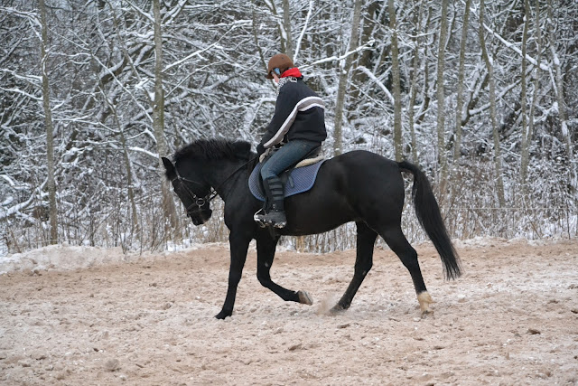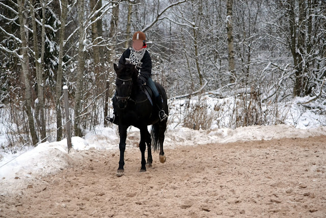 Eli tänään oli viimeinen valmennus, ennen joulua. Oli hyvä herätä aamulla 10, kun piti lähteä 10:15! Valmennuksen alku meni todella hyvin, Matti oli rauhallinen, kuulolla ja yhteistyöhaluinen. Teimme ihan perus käynti-seis tehtävää ja yllättävää kyllä, Matti pysähtyy kun itse hengitin syvään sisään ja ulos, sekä ajattelen pysähtymistä. Varmasti tästä "taidosta" on hyötyä kisoissa!