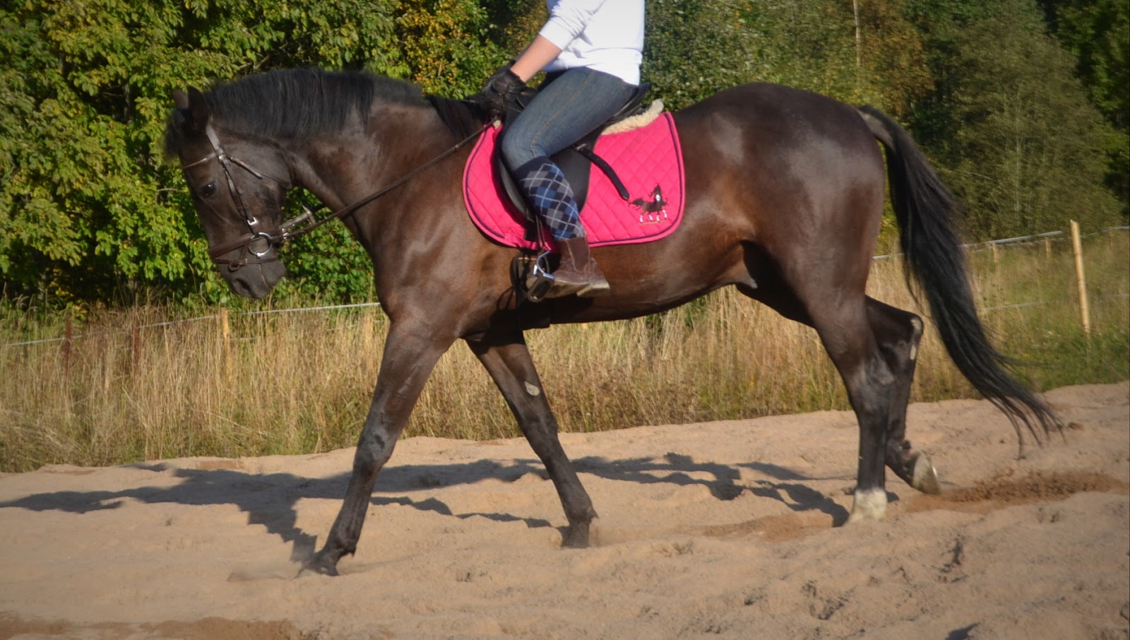 Kävelimme hetken ja sitten kokeiltiin laukkaa. Voin sanoa, etten ole varmaan ikinä ratsastanut niin rumasti laukassa, kun nyt menin. Mutta tulkaa itse kokeilemaan, ei oo niin helppoa. Aluksi, nostot menivät törkeän huonosti ja sitten mentiin ravin ja laukan sekoitusta. Toiseksi, ei ottanut pidätteitä helposti läpi, kieltämättä jouduin tekemään 20 pidätettä, ennen kuin sain raviin siirrettyä. Oli pojalla vähän intoa, pitääkö tässä nyt miettiä jotain laukkakilpailua?