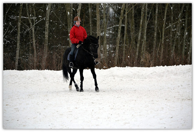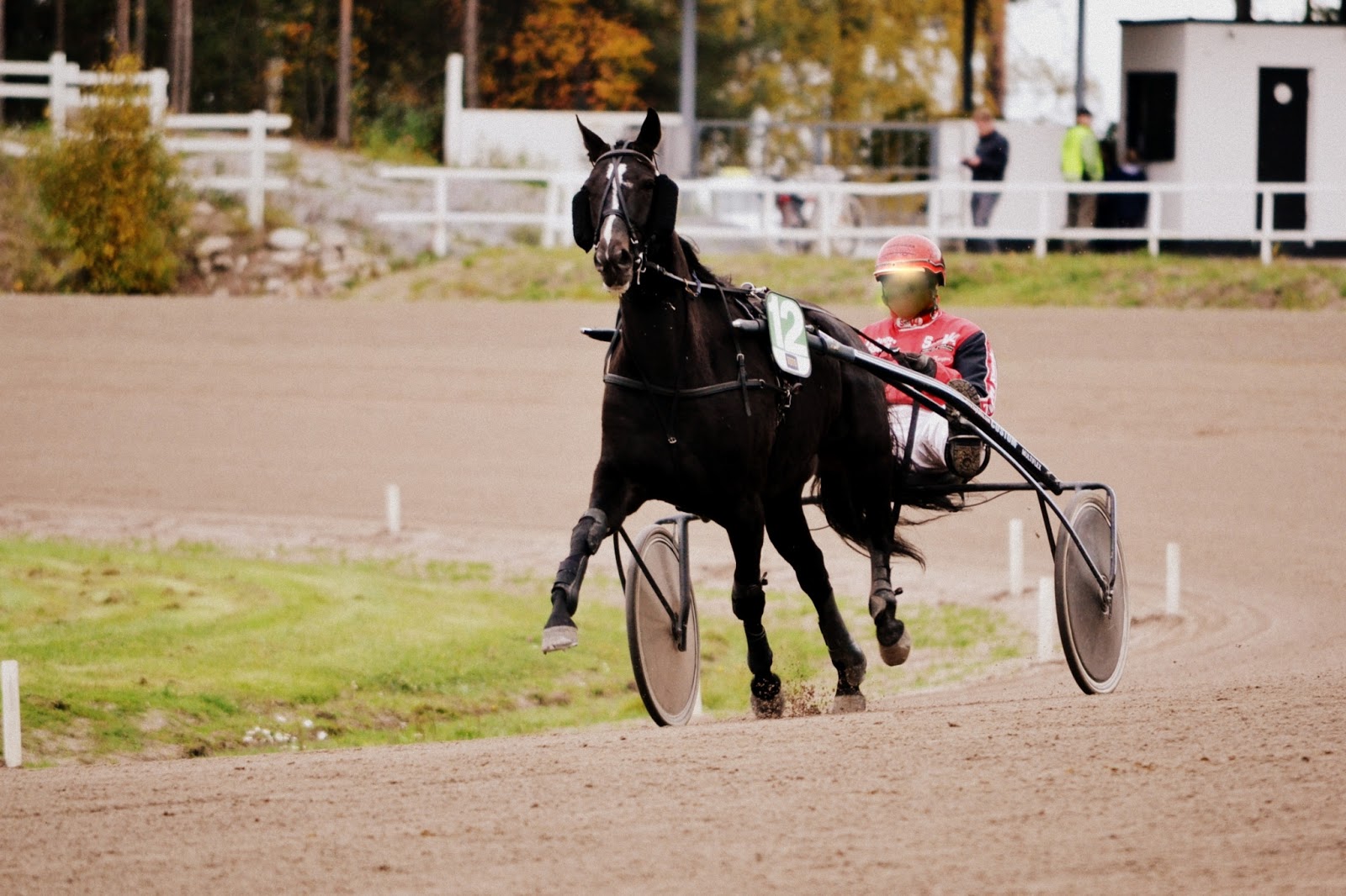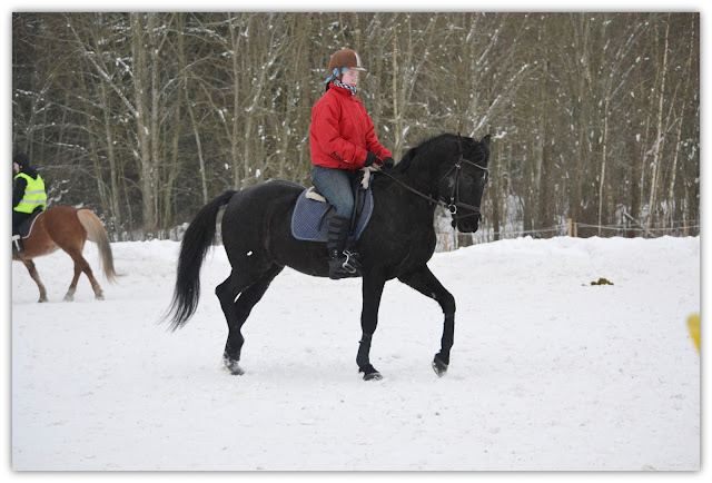 Viimeinen tehtävä oli itse miettimäni ja oli hieman haastavampi. (alempana kuva!) Siinä piti nopeasti saada hevonen taipumaan eri suuntaan, mikä ei Matille ole mikään itsestään selvyys. Tehtävä alkoi aivan niinkuin arvelin, eli alussa oli juuri niitä taipumisvaikeuksia. Kun kuitenkin homma alkoi sujua ja ratsastin tehokkaasti, tuntui tehtävä lasten leikiltä ja sain taas kuulla pärskähdyksiä. Olin super tyytyväinen hevoseen, joten lopetin kentällä ratsastuksen ja menin vielä radalle ravaamaan loppuravit. Kävelin tietenkin ennen raveja. Radalla Matti oli jo väsynyt, mutta jaksoi silti ravata ja oli hyvin kuulolla, vaikka häiriköntekijöitä oli ympäristössä.