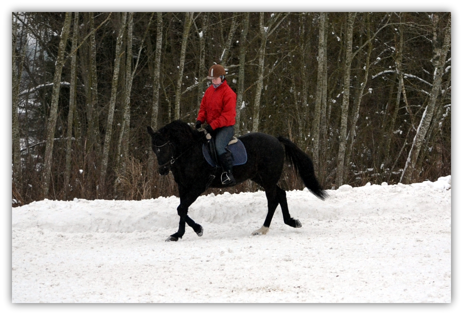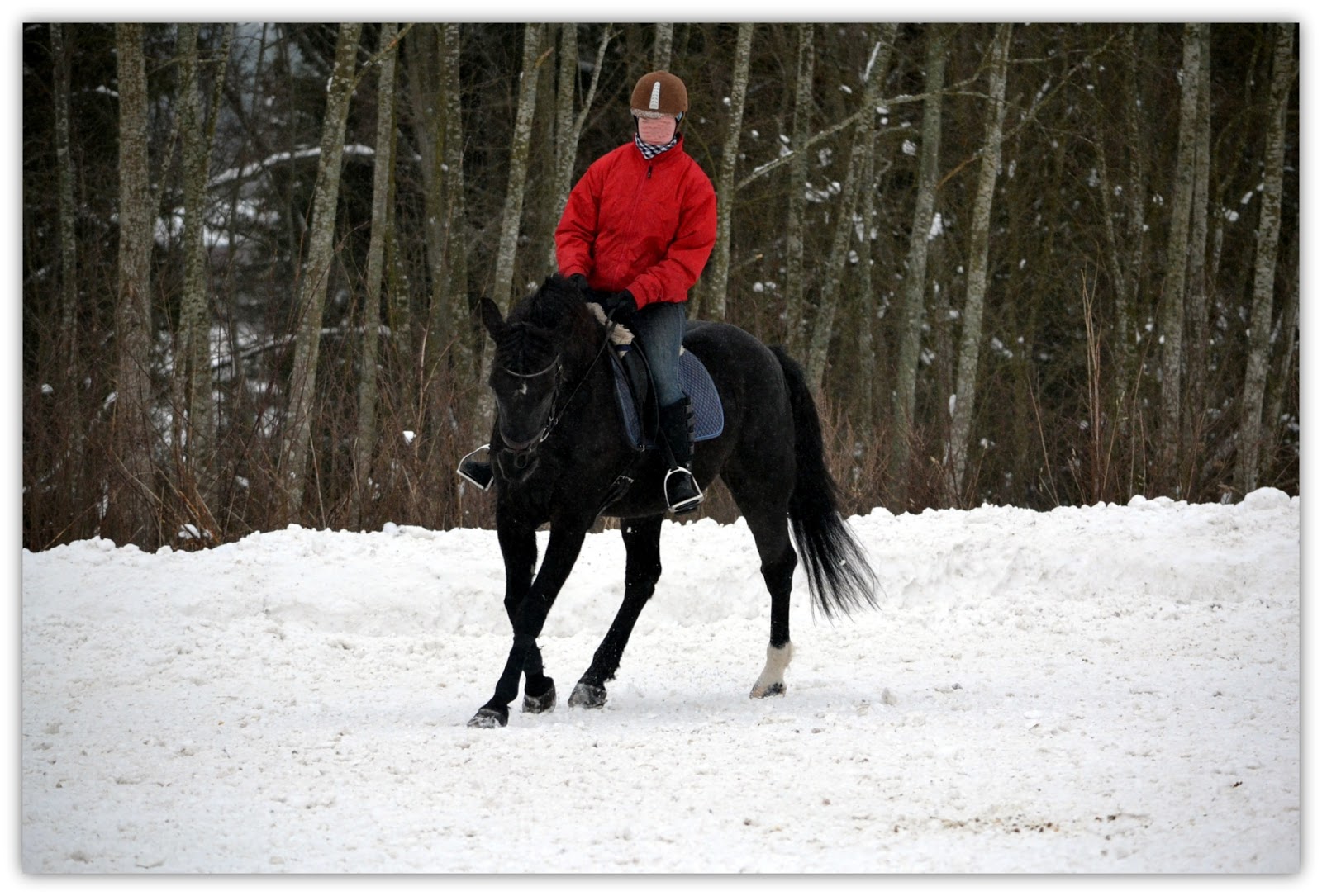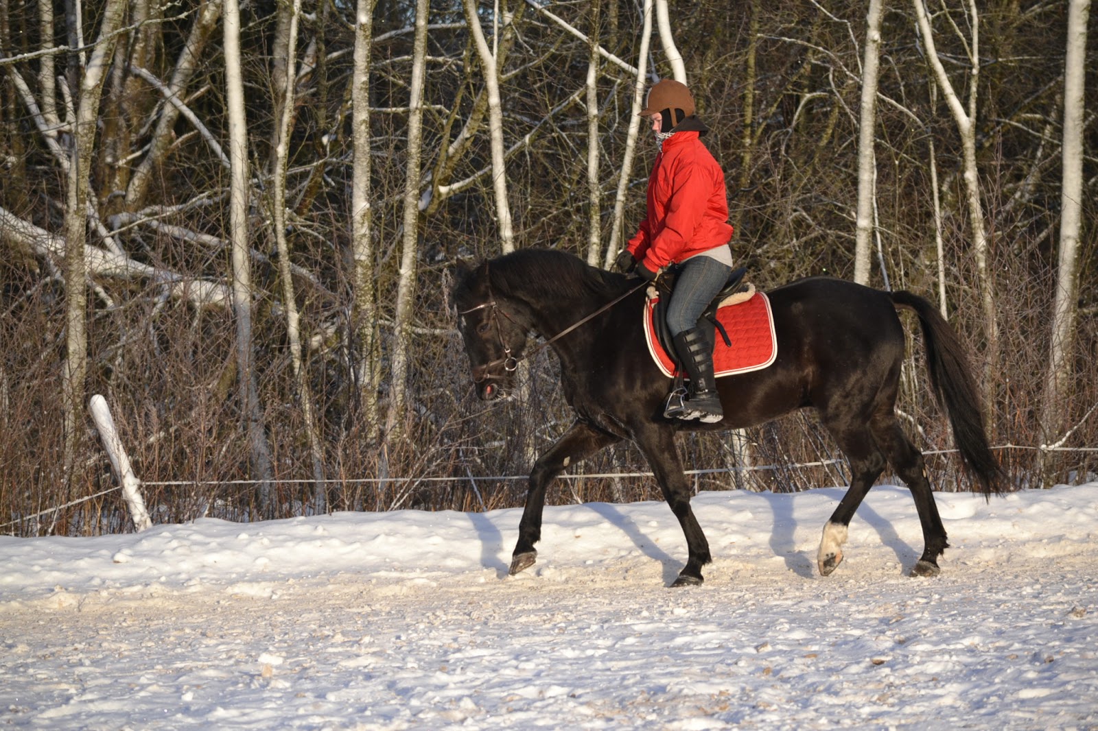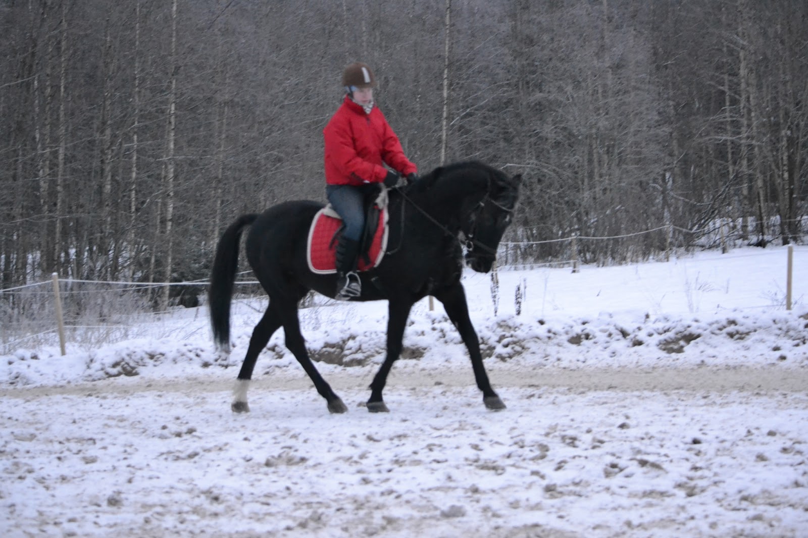 Olen todennut, että Matin kanssa ei kannata lähteä vain ravaamaan uraa pitkin, se tarvitsee jonkun tehtävän, johon keskittyä. Tässä lähiaikoina on menty paljon mm.kolmikaarista kiemurauraa, loivaa kiemuraa ja oma keksimiä taivutus, sekä siirtymis harjoituksia. Olen myös oppinut itsestäni sen, että hallitsen hevosen paremmin harjoitusravissa, olen lähempänä sitä ja pystyn jotenkin ratsastamaan tehokaammin harjoitusravissa, kuin keventäessä. Matin ravi oli alkuvuosina hirveätä istua, sillä pompin siellä kuin perunasäkki. Nykyään kuitenkin istuntani on parantunut todella paljon; pystyn pitämään jalat lähellä, ilman että ne heiluu koko ajan. Lisäksi käteni ovat lähempänä niiden oikeaa kohtaa.