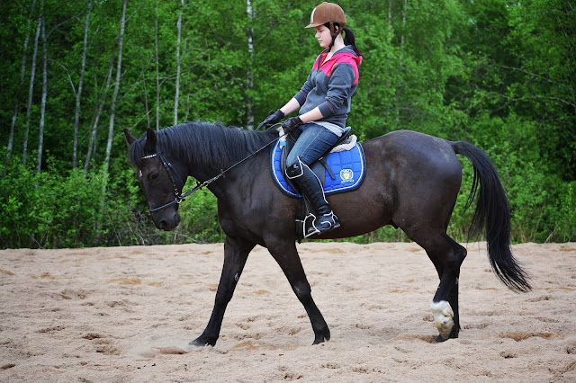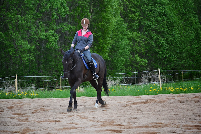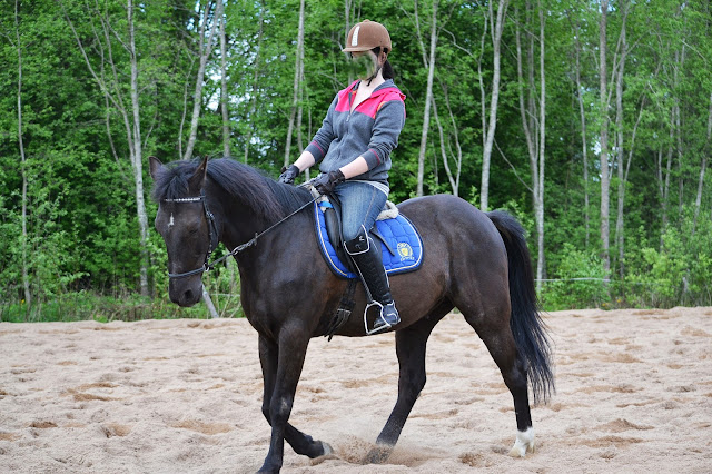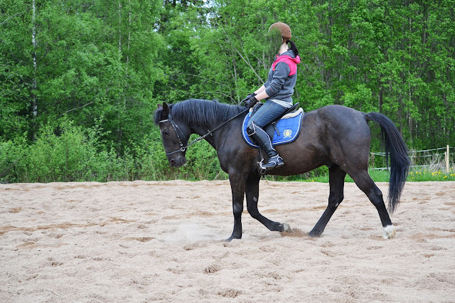 Horze susiesin ratsastussaappaat kokoa 41, mutta kun koitin niitä, olivat naurettavan isot. Kävimme siis ostamassa sittenkin Horzen myymälästä saappaat koossa 40 ja palautukseen lähtee nuo kokoa isommat. Saappaita olen jo testannut ja koska eläissäni minulla ei ole ikinä ollut ratsastussaappaita tuntuivat ne uskomattoman tukevilta ja pitäviltä. Harjoitusravissakin istunta parani huomattavasti, kun oli kunnon pito. Vielä vähän ovat tietty tönköt, mutta ajallaan sitten mukautuvat onneksi jalkaan. Moni varmaankin nähnyt noi saappaat jossain.